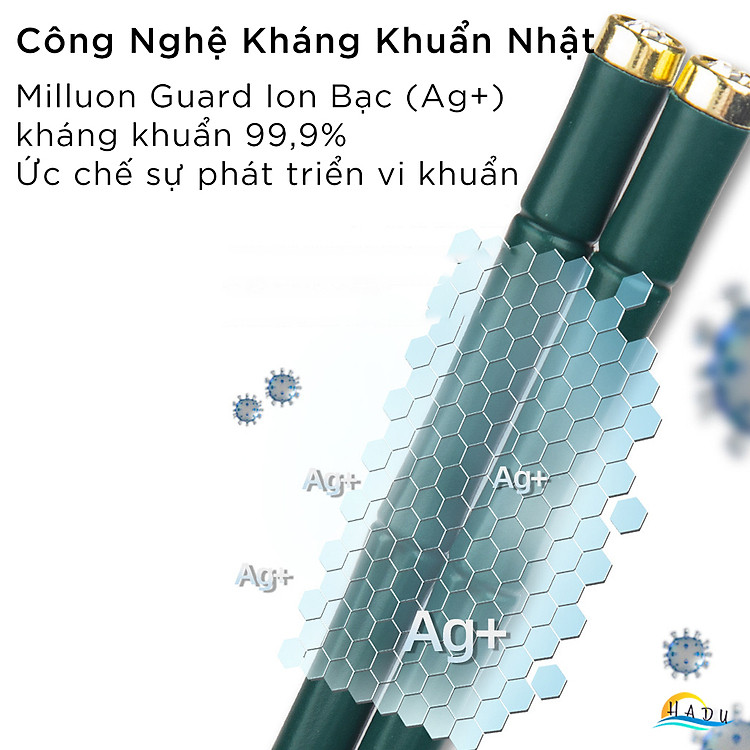 - Công nghệ kháng khuẩn milluon guard Ion bạc Ag+kháng khuẩn đến 99,99% an toàn hơn