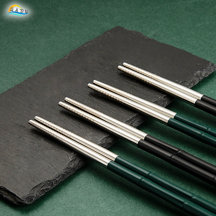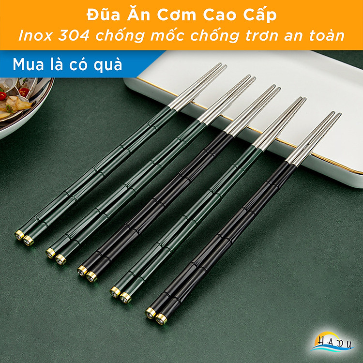 Giới thiệu [10 Đôi] Đũa Ăn Cơm Inox 304 Chống Trượt Kiểu Hàn Quốc Cao Cấp Hình Cây Tre Sang Trọng HADU