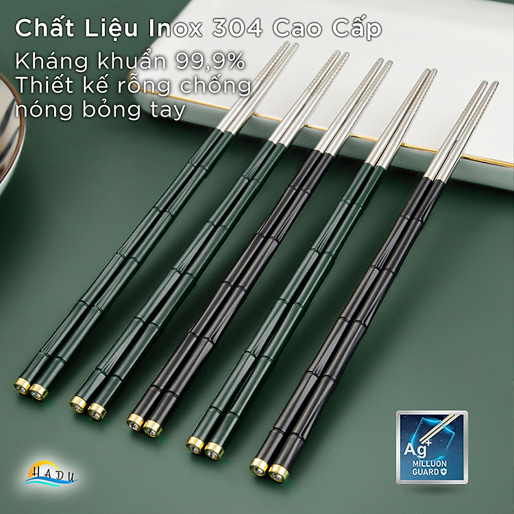 [10 Đôi] Đũa Ăn Cơm Inox 304 Chống Trượt Kiểu Hàn Quốc Cao Cấp Hình Cây Tre Sang Trọng HADU️Tính năng - Lợi ích sản phẩm:- Chất liệu inox 304 cấp thực phẩm bảo vệ sức khỏe mỗi ngày- Thiết kế rỗng c...