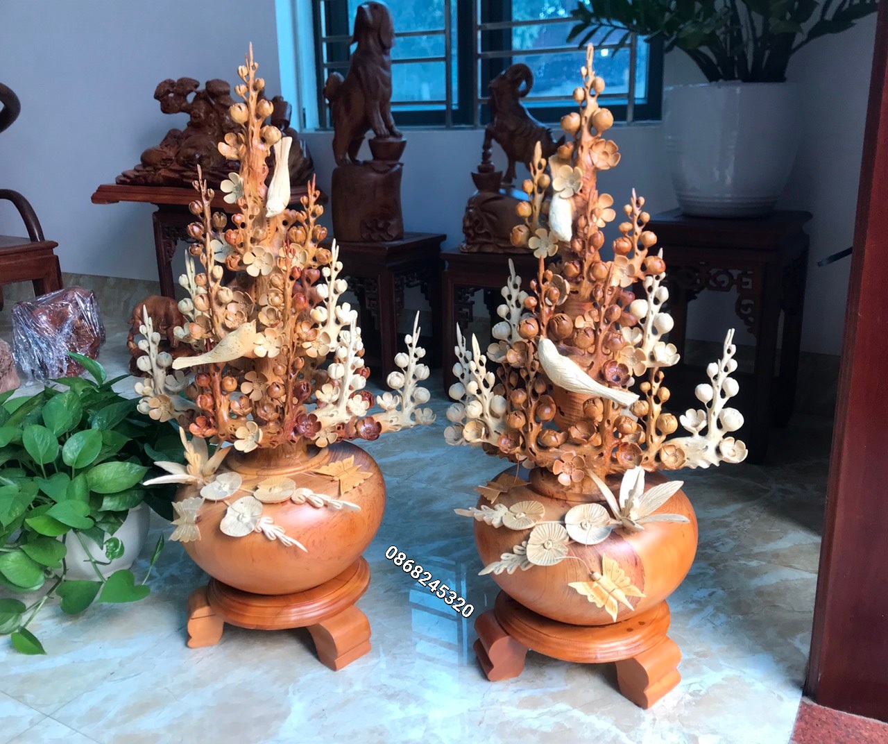 _ 2 bình hoa mai phú quý được làm bằng chất liệu gỗ hương tự nhiên 100%