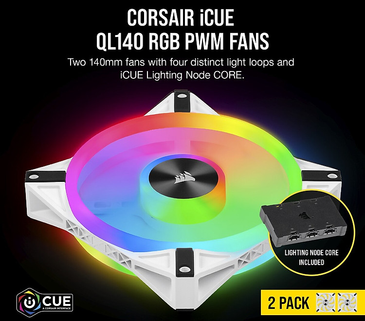 Giới thiệu Bộ 2 quạt máy tính 140mm Corsair QL140 WHITE RGB LED kèm Node Core - Hàng Chính Hãng