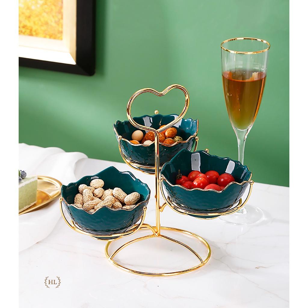 3 Hũ Sứ Kẻ Vàng Kim Kèm Kệ Inox Vàng Gương | Kệ Decor chuyên đựng kẹo - hạt khô kèm hũ sứ sần cao cấp 2022
