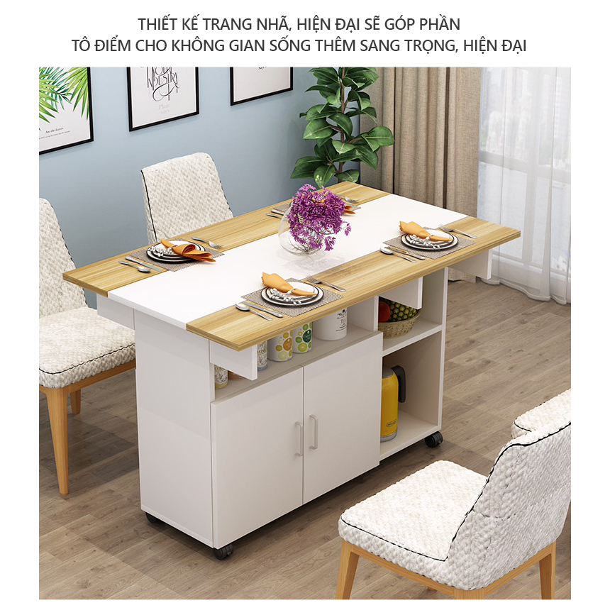 Bàn Ăn Gấp Gọn Thông Minh Kèm Bánh Xe Dễ Dàng Di Chuyển AP286