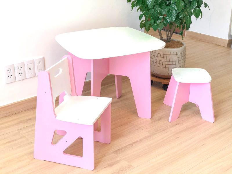 Bộ bàn ghế trẻ em bằng gỗ lắp ghép Màu Xanh bao gồm : 1 bàn + 2 ghế như hình (1 ghế tựa và 1 ghế đôn)