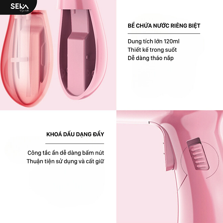 - Bể chứa nước dung tích lớn 120ml, đủ để “hô biến” cả tủ đồ phẳng phiu trong một lần ủi. Đồ phẳng phiu như vừa mới mua