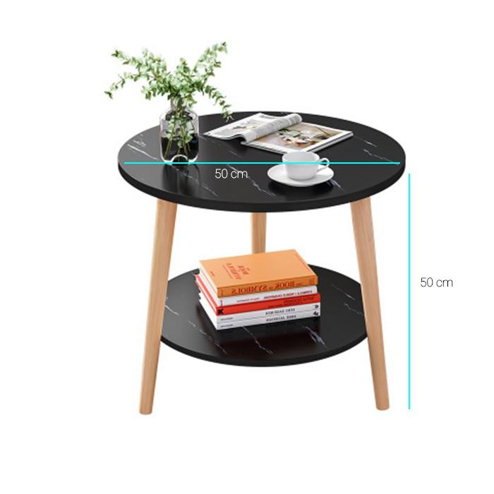 Bàn trà tròn 2 tầng mặt gỗ vân đá màu trắng và đen trang trí phòng khách - Bàn sofa gỗ decor đẹp ngồi coffee độc lạ