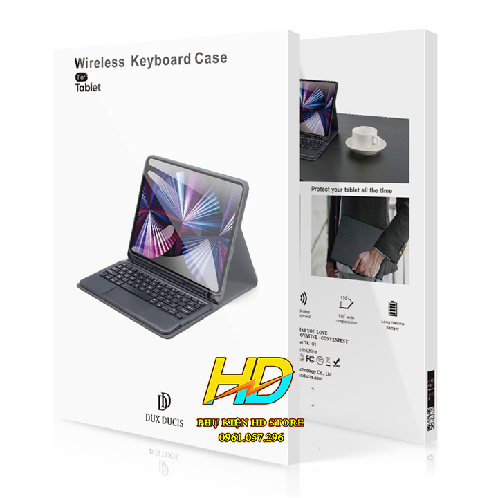 + Bao Da Kèm Bàn Phím Bluetooth Có Bàn Di Chuột TouchPad Hiệu Dux Ducis có trọng lượng nhẹ, tổ hợp phím êm ái và độ nhạy cao. Tiết kiệm điện năng nhờ chế độ tự động tắt bàn phím.