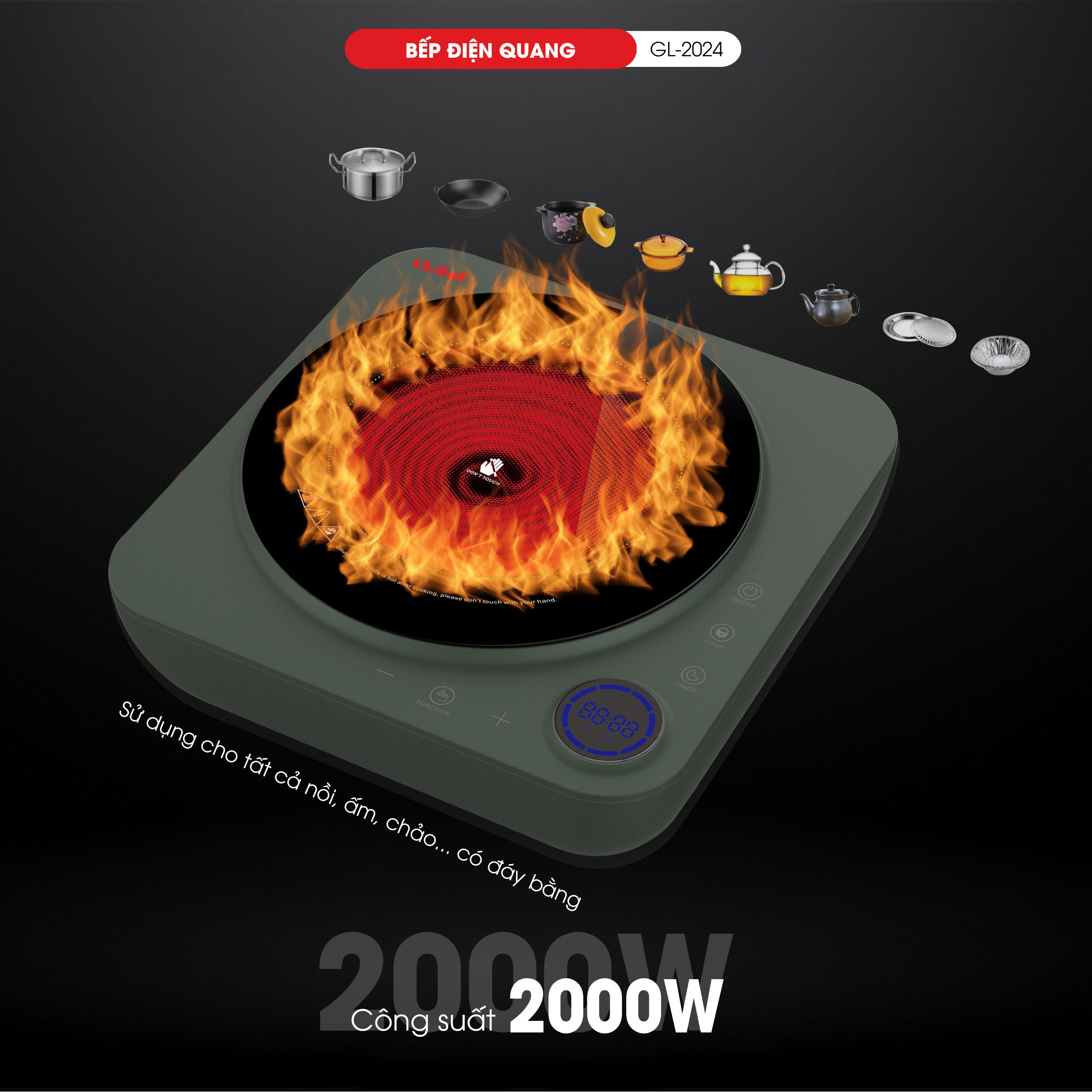 BẾP ĐIỆN QUANG GALI GL-2024 chính là giải pháp hoàn hảo – không kén nồi, sử dụng linh hoạt cho mọi loại nồi có đáy từ 12cm đến 20cm!
