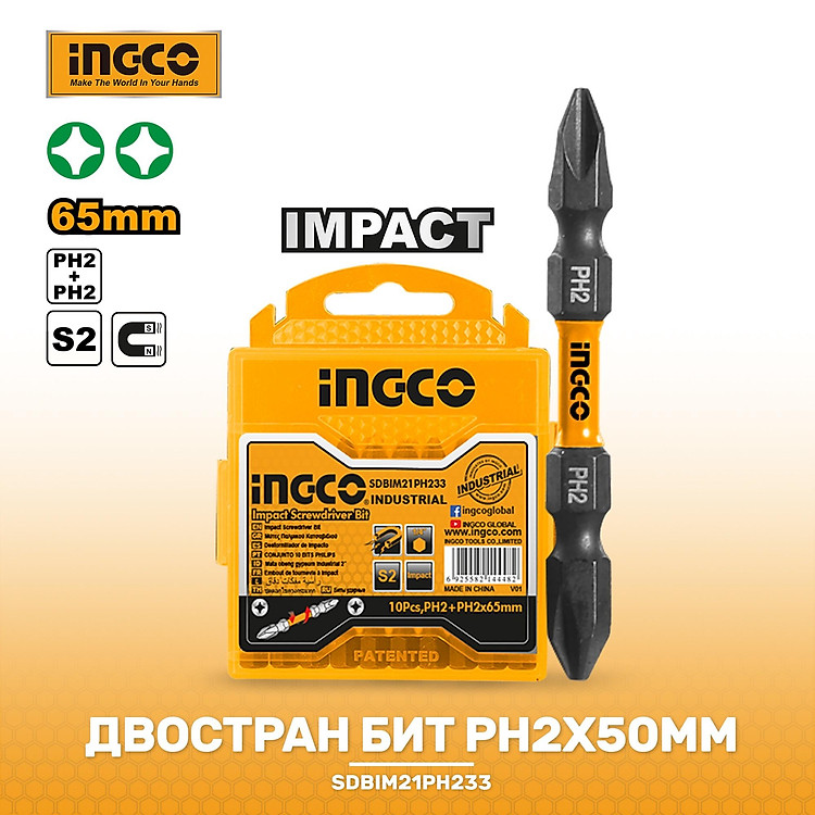 - Mũi bắt vít 2 đầu PH2 + PH2 65mm