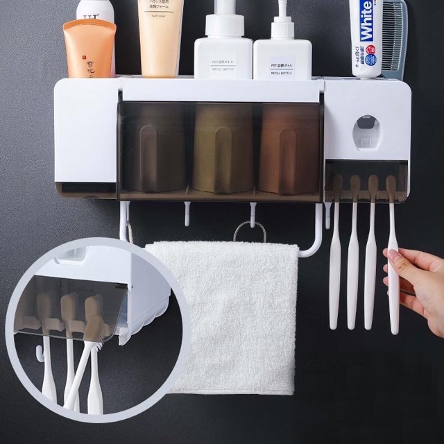 BỘ NHẢ KEM ĐÁNH RĂNG TỤ ĐỘNG DÁN TƯỜNG LÚA MẠCH 3 CỐC SIÊU HÓT 2020