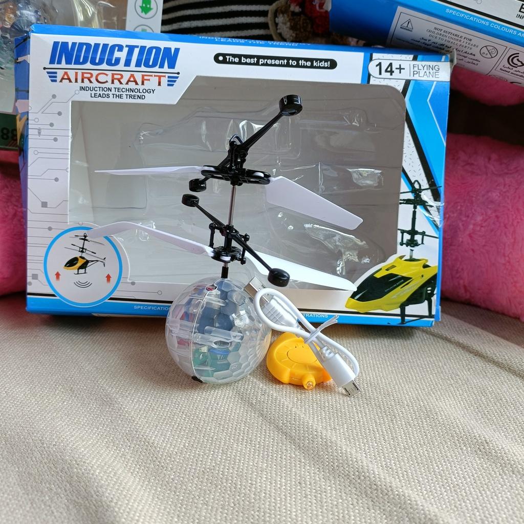 -Nó giống như một chiếc trực thăng đồ chơi nhưng thay vì cabin và thân máy bay trực thăng thông thường, nó có một quả cầu thủy tinh trong suốt. Khi bạn bật lên, nó sẽ phát ra ánh sáng rực rỡ, rất đẹp!