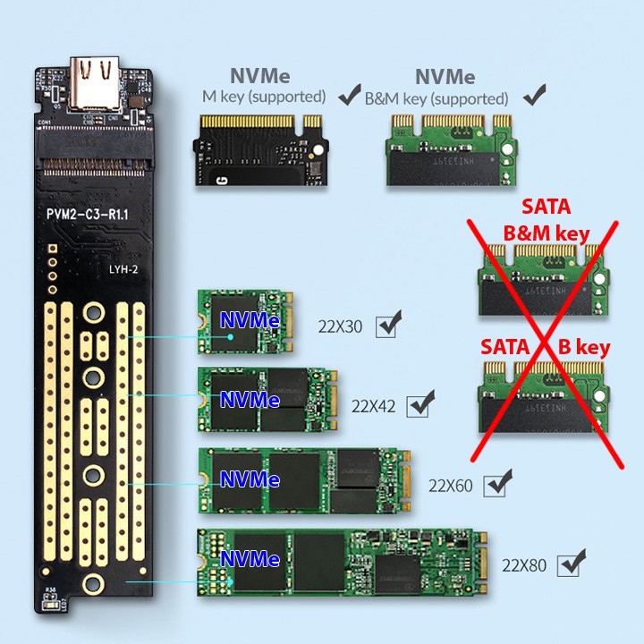 Hỗ trợ các kích thước 2230, 2242, 2260, 2280