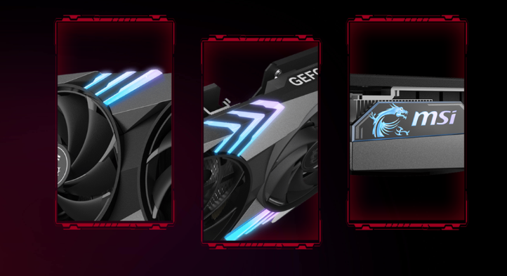 MSI GeForce RTX 4060 Ti thiết kế tấm lưng sang trọng với logo hình rồng nổi bật. Tâm của hai quạt tản nhiệt cũng đặt logo rồng để làm nổi bật sản phẩm đậm phong cách riêng MSI.