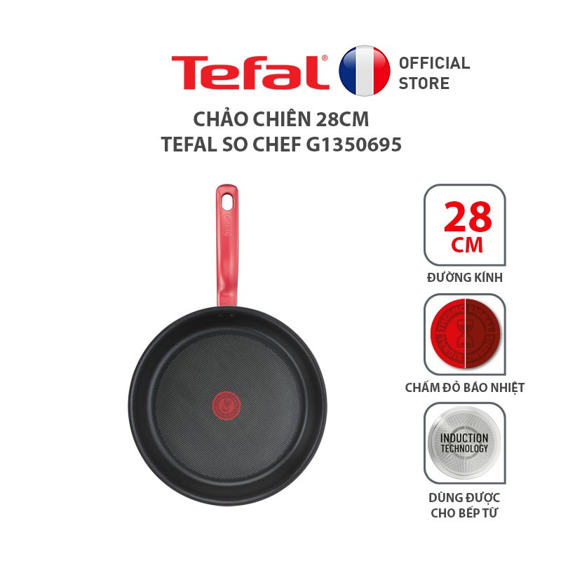 Giới thiệu Chảo chiên chống dính đáy từ Tefal So Chef G1350695 đường kính 28cm - Hàng Chính Hãng- Màu Đỏ