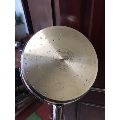Tay cầm làm từ inox sáng bóng, thiết kế rỗng hạn chế nóng tuyệt đối, được bắt vít chắc chắn vào thân chảo, đảm bảo an toàn trong quá trình sử dụng, nâng nhấc, di chuyển. Phía cuối tay cầm còn được thiết kế lỗ treo móc