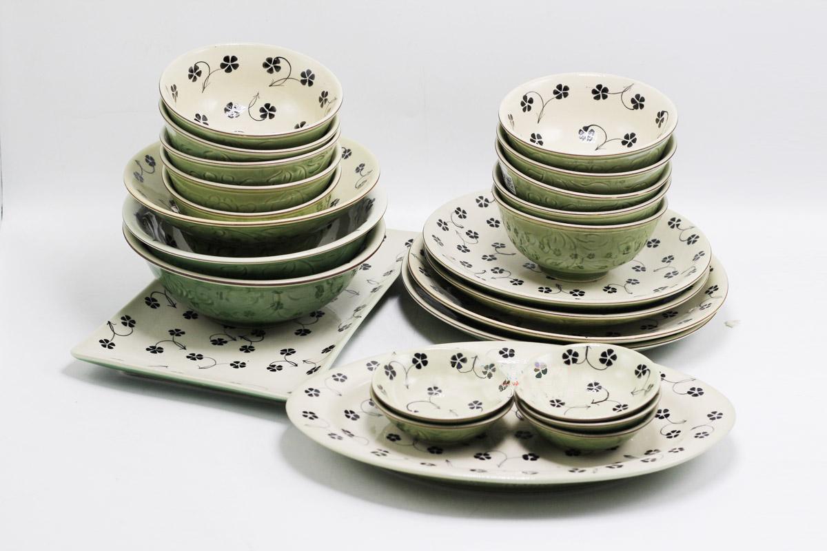 Bộ tô chén đĩa ăn gốm Bát Tràng men xanh vẽ hoa sao may mắm là một trong những sản phẩm được yêu chuộng vì nét vẽ tỉ mĩ, tinh tế và mang phong cách hoài cổ xen lẫn, góp phần làm cho món ăn thật ngon hơn và buổi cơm gia đình ấm cúng hơn với bộ chén đĩa gốm.