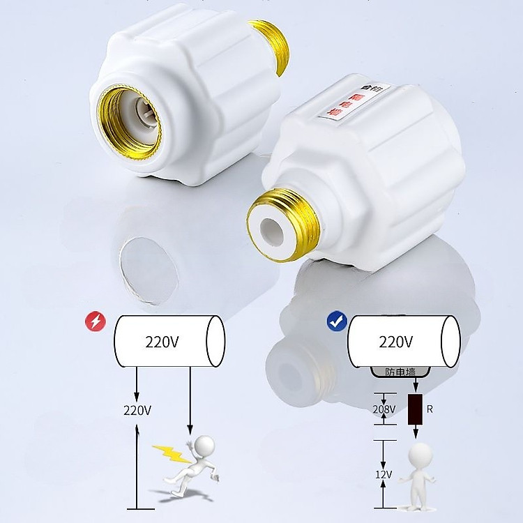 Nguyên lý hoạt động: kéo dài đường dẫn nước và tăng điện trở của nước xuyên qua vách chống điện từ đó làm giảm dòng điện chạy qua cơ thể người. điện áp 220V sau khi đi qua phụ kiện chống giật chỉ còn khoảng 12V, thấp hơn điện áp an toàn của cơ thể con người 36V, đảm bảo an toàn________________________