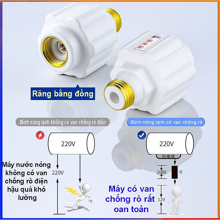 Bộ 2 cái Van chống giật bình nóng lạnh. Thiết bị chống rò rỉ điện an toàn cho máy nóng lạnh loại tốt zen đồng
