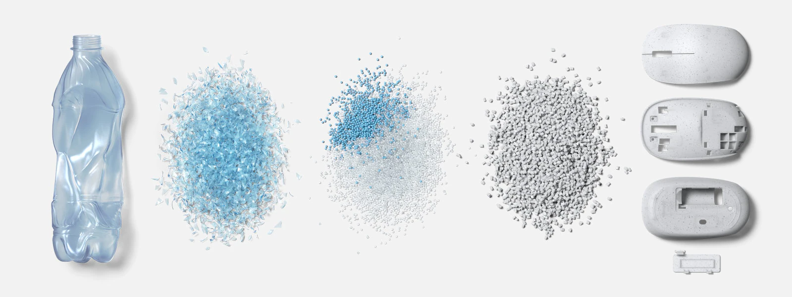 Các viên nhựa tái chế đại dương được pha trộn trong quá trình phát triển vật liệu tạo nên vỏ chuột.