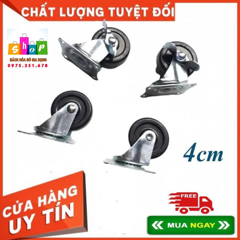 Giới thiệu COMBO 04 BÁNH XE KÉO HÀNG NHỰA ĐEN 4CM - DÙNG ĐỂ GẮN CHÂN GHẾ, BÀN, TỦ QUẦN ÁO, TỦ GIẦY DÉP