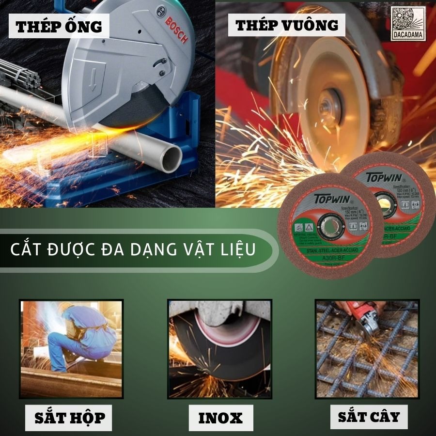 (Combo 10 Viên) Đá Cắt Sắt TOPWIN 150x2x22mm Có Độ Sắc Cao Và Bền, Cắt Không Bụi, Ít Hao Mòn | TOPWIN Official Store