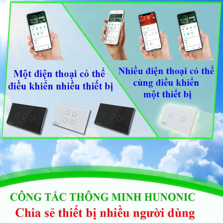 Công Tắc Thông Minh Wifi HUNONIC Hình Chữ Nhật Cảm Ứng 1-2-3-4 Nút Điều Khiển Qua App + Giọng Nói Bảo Hành 1 Năm