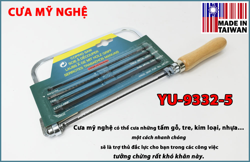 - Cưa mỹ nghệ YU-9332-5 mang đến cho bạn những đường cưa chính xác, ngọt và đẹp mắt vì được thiết kế nhỏ gọn bằng chất liệu cao cấp và gia công đặc biệt cho khả năng hoạt động mang lại sự hài lòng cho người sử dụng. Bạn hãy sở hữu ngay sản phẩm này để có những giây phút làm việc không còn mệt mỏi, vất vả nữa.