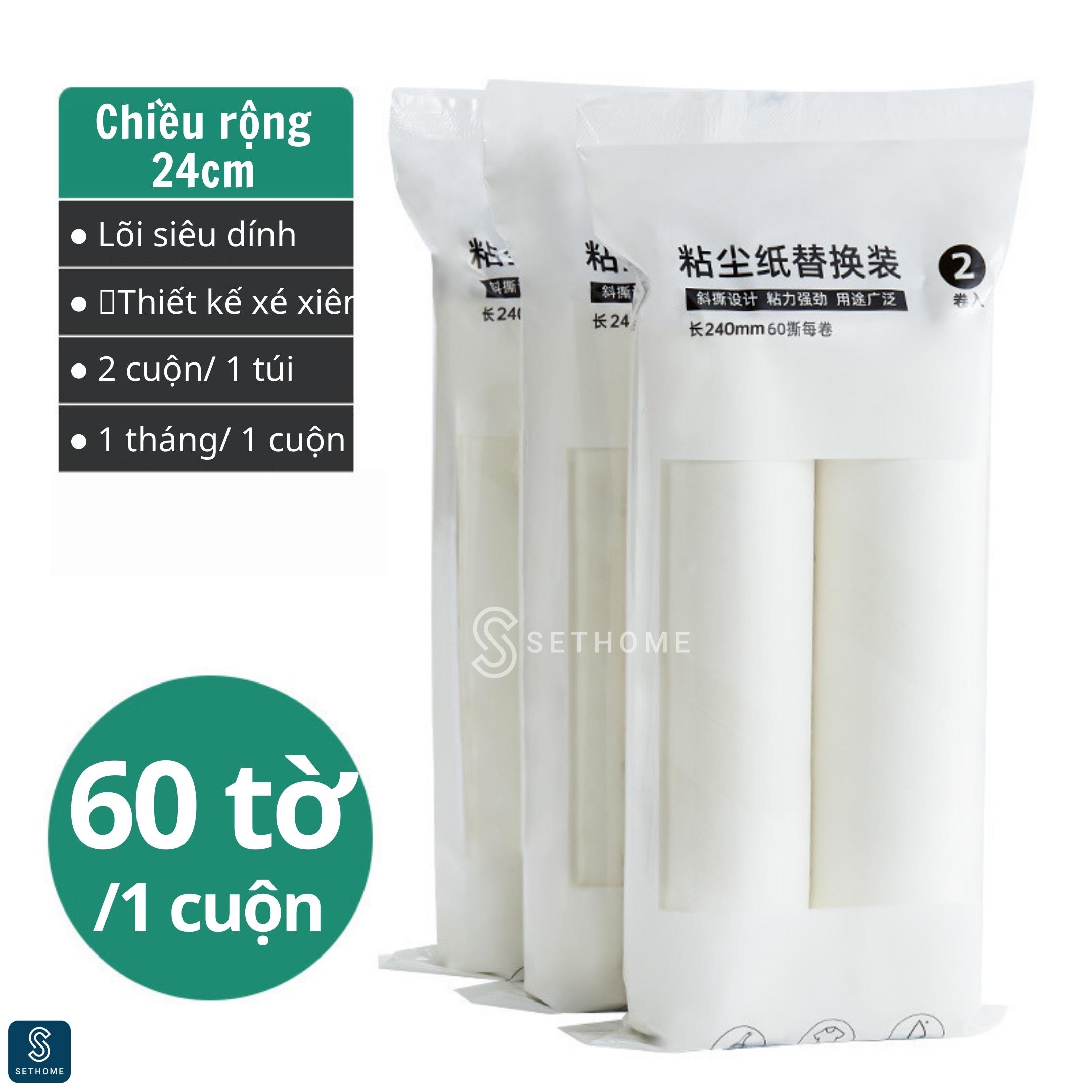 | Hướng dẫn sử dụng | - Dùng thay thế vào lõi dính của cây lăn bụi cán dài SETHOME 24cm- Giúp làm sạch bụi ở ga gối quần áo, rèm cửa, sàn nhà, ghế sofa- Làm sạch ga gối trước khi đi ngủ giúp việc giữ sức khoẻ và có một giấc ngủ ngon- Không để lại vết keo dính trên bề mặt lăn qua.- Lớp keo được thiết kế đường rãnh xé, giúp xé bỏ dễ dàng sau mỗi lần sử dụng. |