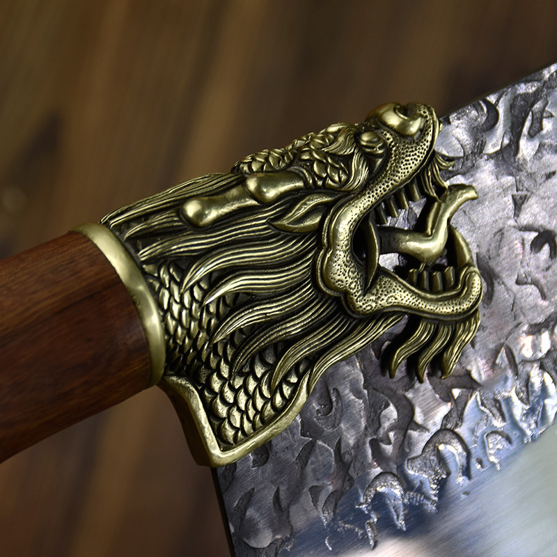 Chất liệu tay cầm: gỗ CẨM LAI, khâu và chuôi cuối dao bằng đồng thau