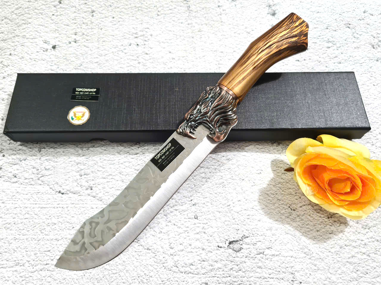 D SỐ 4 : TỔNG DÀI : 32cm, LƯỠI: 18cm,RỘNG : 4.5cm, dày: 3mm, NẶNG : 2.3 lạng, CHẤT liệu lưỡi: 4Cr13MOV (thép 4 crom 13 molypden vanadi).Chất liệu CÁN: nhựa abs xịn . khâu đầu rồng và chuôi bằng thép 4cr13