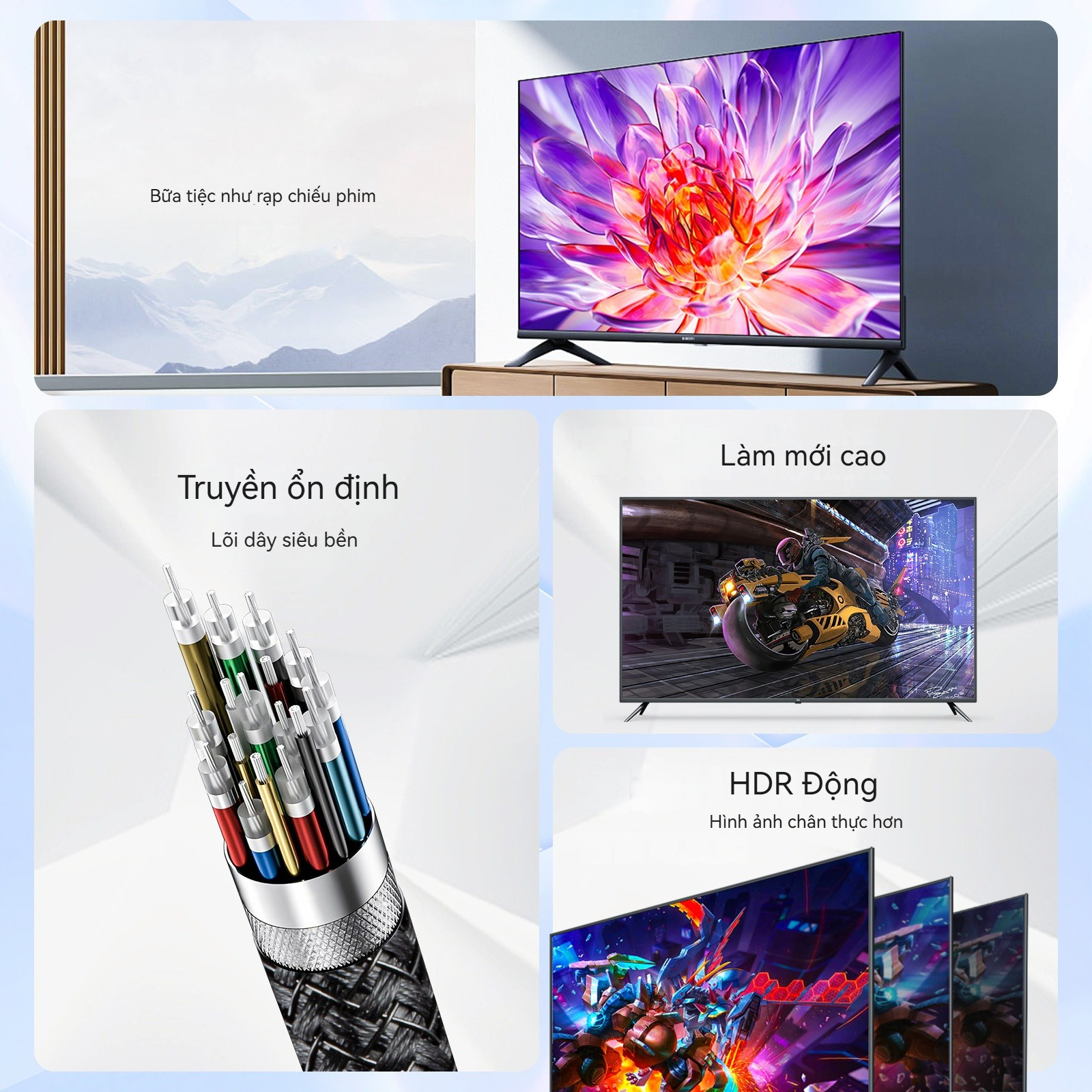 | Lưu ý | HDMI 2.1 FIRO 8K/60Hz/48Gbps: Tương thích ngược với HDMI2.0/1.4/1.3 và các phiên bản khác |