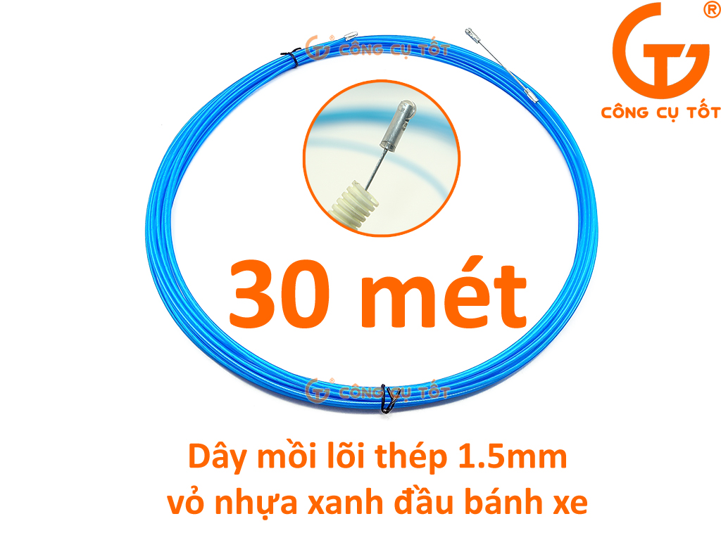 - Dây mồi chuyên dụng để luồn dây điện qua ống gen tròn, ống ruột gà có nhiều đường gấp khúc.