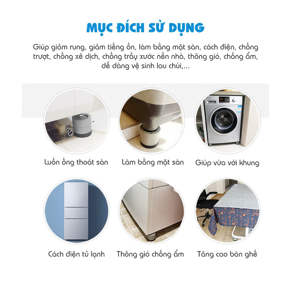PHÙ HỢP MỌI LOẠI MÁY CHIỀU CAO ĐỦ TẠO KHÔNG GIAN QUÉT DỌN GẦM MÁY GIẶT Chống rung, chống ồn hiệu quả ( 1 đơn 1 bộ 4 đế cao su)
