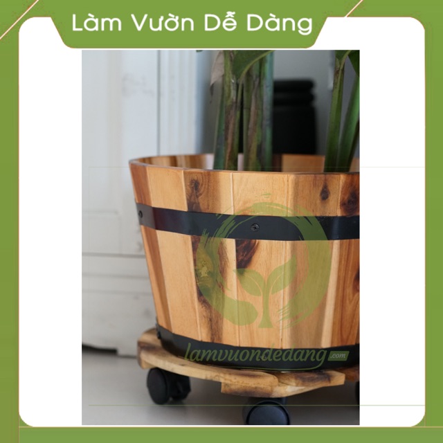 Đế đẩy chậu cây được làm bằng gỗ tràm, lau dầu lanh chống thấm