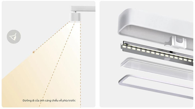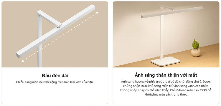 Thiết kế nâng cấp có đầu đèn treo ngang dài 60cm, dễ dàng chứa máy tính xách tay để làm việc hoặc học tập, đồng thời tiết kiệm không gian bàn làm việc.