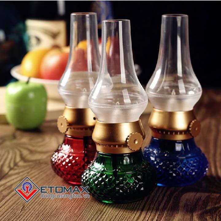 Đèn dầu điện tử cảm ứng thổi bật tắt được làm bằng thủy tinh với những đường nét hoa văn cổ kính sử dụng pin sạc có thể sạc lại nhiều lần, ngọn đèn được làm bằng bóng led cho tuổi thọ cao, công suất 1w cho thời gian sử dụng lâu hơn, không gây hỏa hoạn.