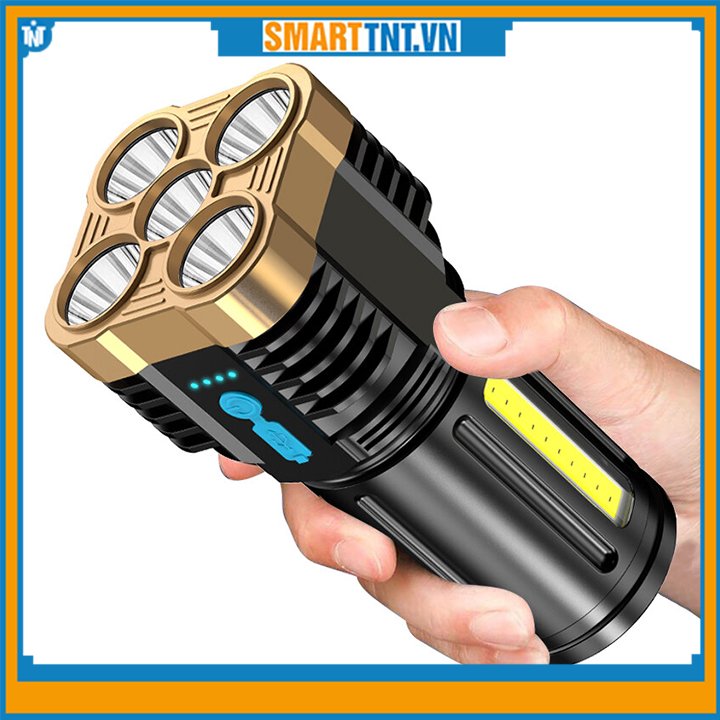 Thông tin: Đèn pin cầm tay siêu sáng 5 bóng chiếu xa 200m - Xuất xứ: Trung Quốc - Chất liệu: ABS - Màu sắc: đen - Trọng lượng: khoảng 175g - Kích thước: khoảng 136mm × 50mm - Dung lượng pin: 1200mAh - Hạt đèn: 5LED + bên COB - Ánh sáng mạnh-ánh sáng yếu-đèn flash-COB ánh sáng bên - Lumens: khoảng 500LM - Màn hình nguồn: có - Không thấm nước: Không thấm nước dạng nhẹ