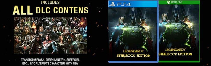 Injustice 2 : Legendary Edition Day One Edition là phiên bản hộp thiếc ,bản mở rộng của Injustice 2 ,Bao gồm 10 nhân vật khác bao gồm Darseid, Hellboy, Teenage Mutant Ninja Turtles cộng với 5 bộ trang phục premiere.