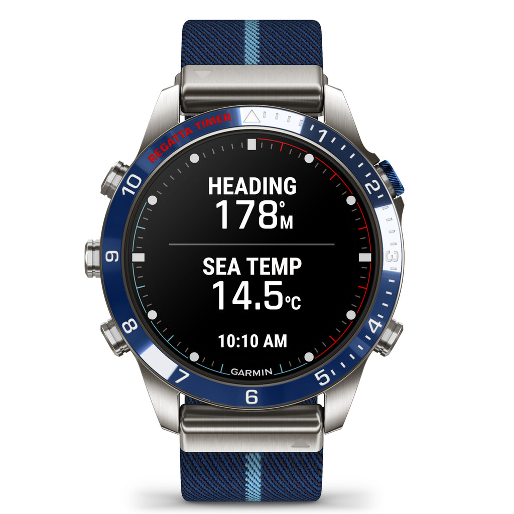 Tượng trưng cho vẻ đẹp đỉnh cao ở phân khúc smartwatch sang trọng nhất - Garmin MARQ Captain thế hệ thứ hai được gia công tỉ mỉ và cầu kỳ, khoác lên thiết kế mang tone màu xanh hải quân và hội tụ những công nghệ đẳng cấp để cùng bạn đột phá mọi giới hạn. Với nguồn cảm hứng từ đại dương, sản phẩm đem lại loạt tính năng hỗ trợ bơi, lặn và định vị hiệu quả trên biển.