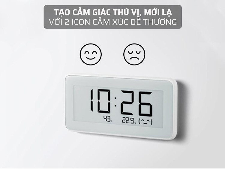 Một điểm khá thú vị là đồng hồ tích hợp 2 icon ngộ nghĩnh và tức giận để biểu thị tình trạng nhiệt độ, độ ẩm, giúp người dùng dễ hiểu và thích thú hơn.