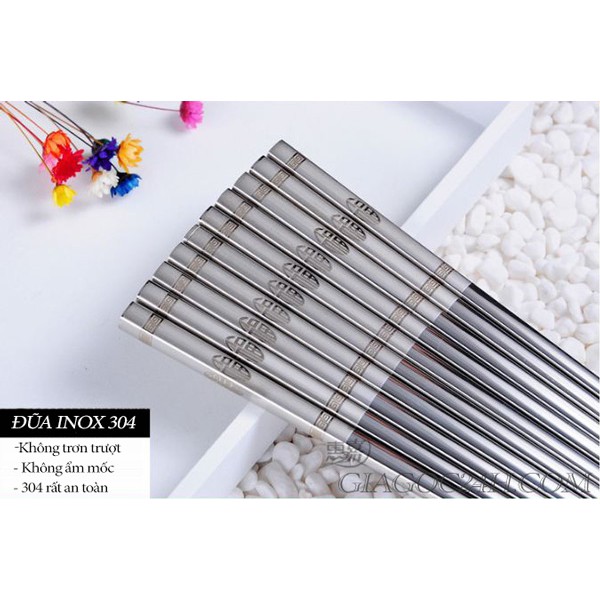 Tuy là inox nhưng được thiết kế những kẻ chỉ sần nhằm cầm và gắp rất chắc không trơn trượt. Đũa được sản xuất bằng inox 304 nên rất an toàn cho sức khỏe yên tâm người dùng.