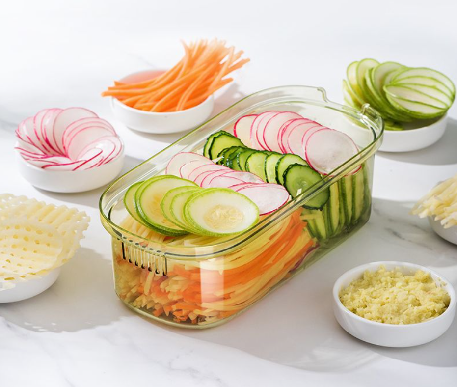Tập trung vào sự nhỏ gọn vì vậy điểm hạn chế của bộ nạo sợi rau củ đa năng này theo là không có chỗ cất các lưỡi dao.