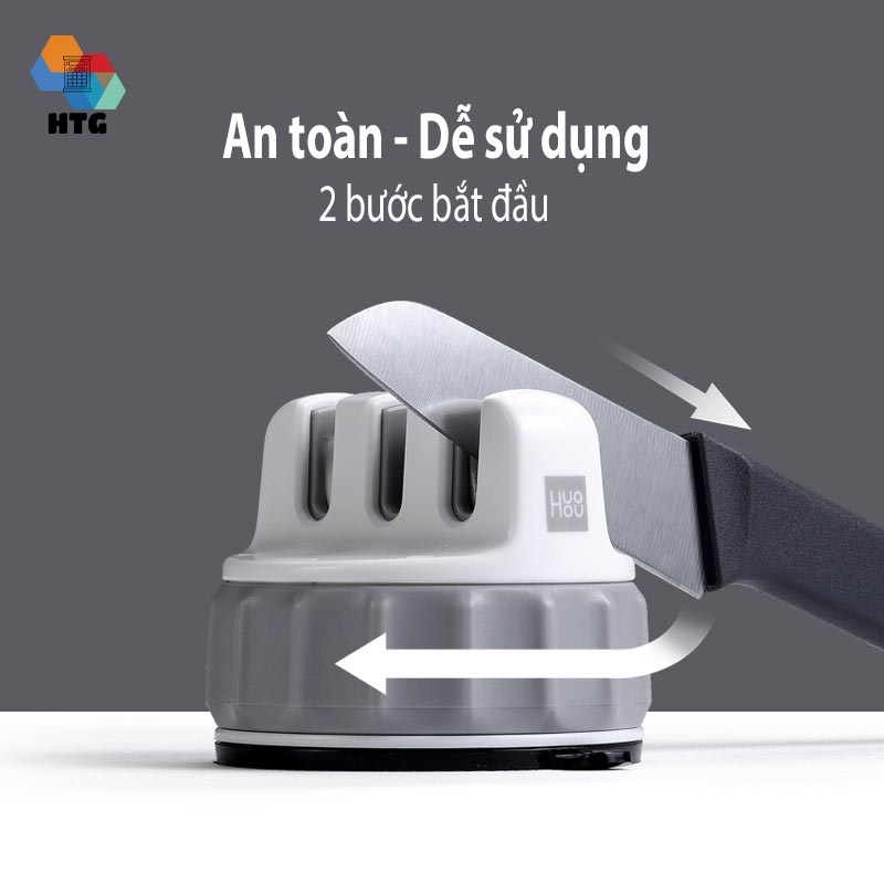 | Hướng dẫn sử dụng | Đặt dụng cụ trên bề mặt nhẵn, phẳng. Ấn nó xuống và xoay đai xoắn ở giữa sang trái theo đầu cắt đã đánh dấu, cho đến khi dụng cụ cố định dính vào mặt phẳng.Thao tác mài : Đặt dao vào lưỡi mài, giữ nguyên góc của dao ở tâm, lùi theo đường cung của mép dao với lực thích hợp và đều, quan sát tình trạng của mép dao, lặp lại 3-5 lần.Tháo dụng cụ mài : Xoay đai xoắn ở giữa sang phải, sau khi nghe tiếng "cạch", nhấc cốc hút lên để hoàn tất. |