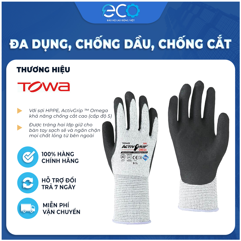 Găng tay chống cắt và chống dầu Towa ActivGrip Omega 540 là sản phẩm bảo hộ lao động chất lượng cao từ Nhật Bản, được thiết kế để bảo vệ đôi tay trong các môi trường làm việc khắc nghiệt.