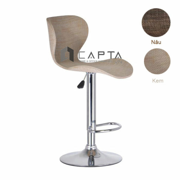 Ghế bar thân Polywood CB2255-W Nội thất Capta Ghế quầy đảo bếp màu kem nâu thân Polywood bọc lưới chân mâm Pen cao thép mạ chrome hcm