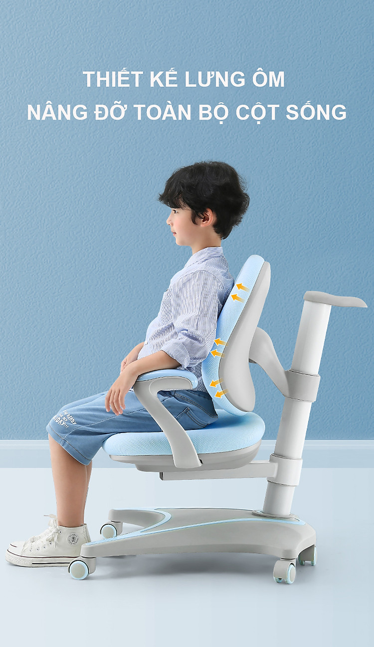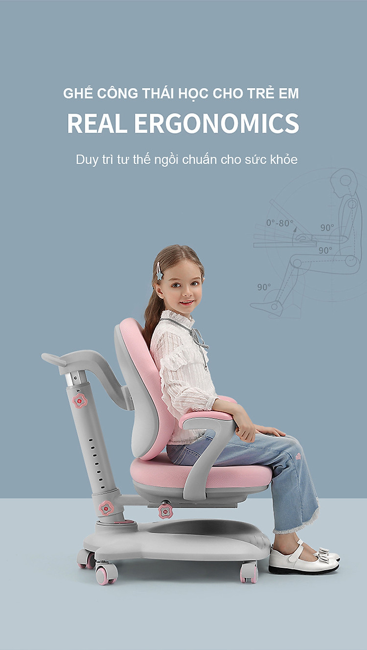 Ghế công thái học trẻ em chống gù chống cận Sihoo E35C Ergohome bảo về cột sống, đệm ngồi cao su êm ái, bọc vải có thể tháo rời để vệ sinh, bảo hành 2 năm, có khóa bánh xe an toàn cho trẻ
