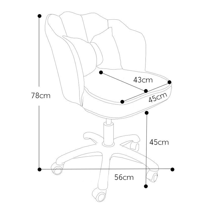 Ghế có bánh xe: 78x56Cm (CaoxRộng)