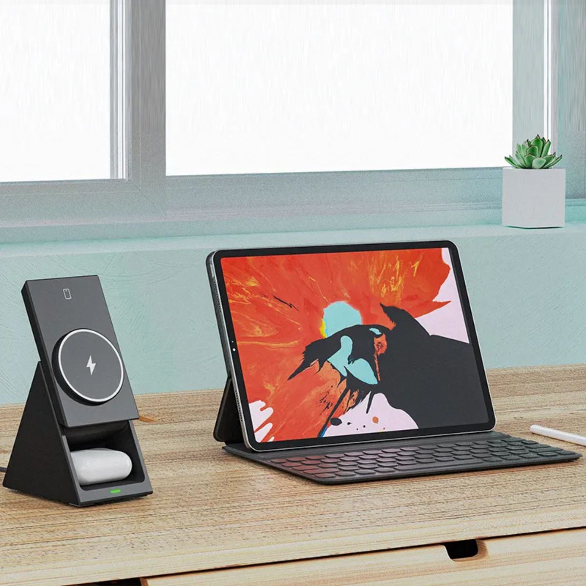 – Thiết kế bệ đỡ cứng cáp, có thể xoay ngang hay dọc ở nhiều góc độ nhằm tạo sự thuận tiện tối đa. Đồng thời, đế sạc còn để lộ bề mặt sạc tai nghe bên dưới, chỉ cần đẩy nhẹ là có thể thu gọn vào bên trong để sạc. – được làm từ chất liệu bền bỉ và cao cấp, cầm chắc tay mà không mang đến cảm giác lỏng lẻo. – Nhìn chung, đáp ứng mọi nhu cầu từ thiết kế nhỏ nhắn đến chức năng cung cấp năng lượng, mang đến cho bạn những trải nghiệm tuyệt vời.