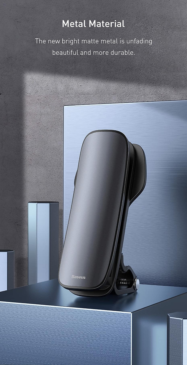 Giá đỡ điện thoại dạng kẹp ngang trên xe ô tô hiệu Baseus Big Mouth Pro Car Mount Được làm từ vật liệu hợp kim cao cấp và công nghệ sơn tĩnh điện cho độ bền màu cao. Chiếc giá đỡ điện thoại của bạn cho cảm giác chạm rất tuyệt và trông cũng rất đẹp.