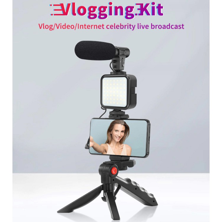 Giới thiệu Giá Đỡ Điện Thoại Kèm Micro Thu Âm, Có Đèn LED Quay Vlog Shot Kit - Chụp Ảnh - Quay Video - TikTok - Livestream